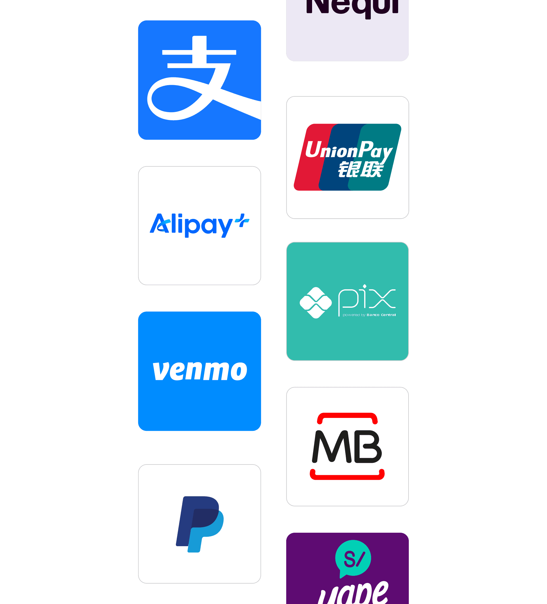 Amplía tu alcance a todos los mercados globales aceptando métodos de pago internacionales como MB Way, Alipay+, Pix y otras opciones locales.
