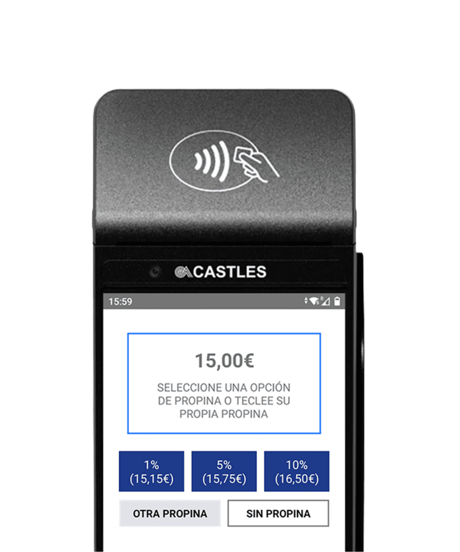 Propinas configurables por importe o porcentaje, que agilizan el cobro y minimizan la gestión en efectivo.